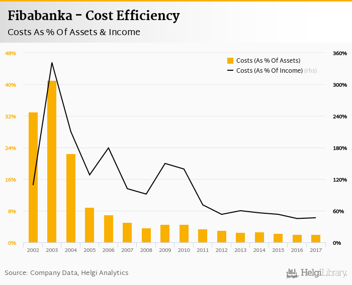 Fibabanka's cost to income ratio reached 46.7% in 2017, up from 45.2% compared to the previous year.