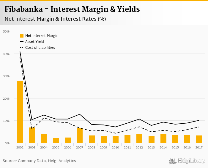 Fibabanka's net interest margin amounted to 3.50% in 2017, down from 3.51% compared to the previous year.