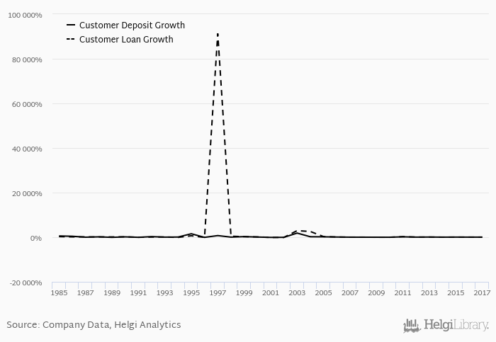 On the other hand, bank's customer deposit growth amounted to 27.9% at the end of 2017, down from 29.0% when compared to the previous year. Historically, the bank’s deposit growth reached an all time high of 1,846% in 2003 and an all time low of -88.3% in 2001. In the last decade, the average annual loan growth amounted to 29.1%.