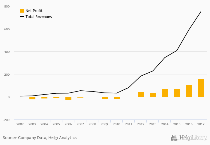 On the other hand, bank’s revenues amounted to an all time high of TRY 751 mil in 2017 and an all time low of TRY 5.74 mil in 2002. The average revenues in the last five years reached TRY 465 mil.