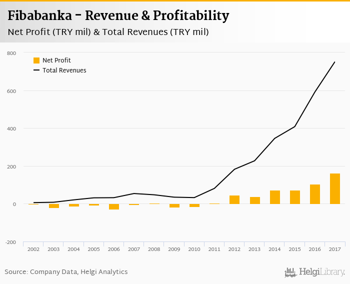 Fibabanka made a net profit of TRY 162 mil under revenues of TRY 751 mil in 2017, up 54.0% and 27.2% respectively compared to the previous year.