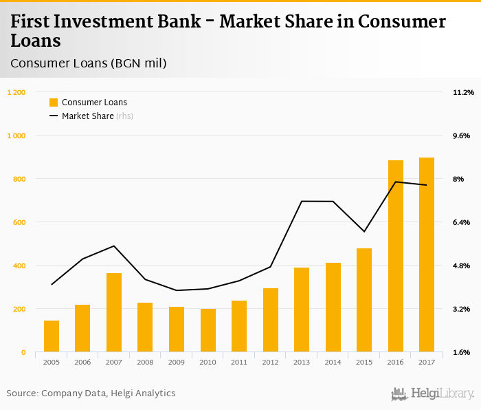 First Investment Bank's consumer loans reached BGN 898 mil in 2017, up 1.45% compared to the previous year.