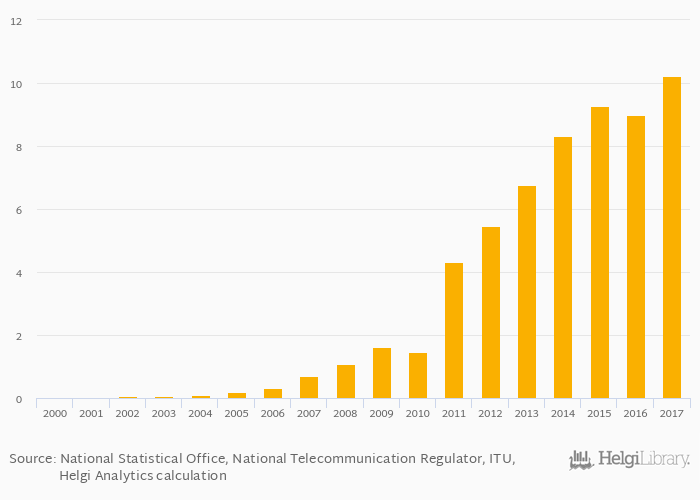 Fixed broadband internet penetration based on connections as a percentage of population rose 13.9% to 10.2% in Ecuador in 2017, according to World Bank.