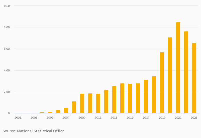 | Vietnam | % | 11.8% | 13.5% | 15.2% | 17.0% | 19.5% |