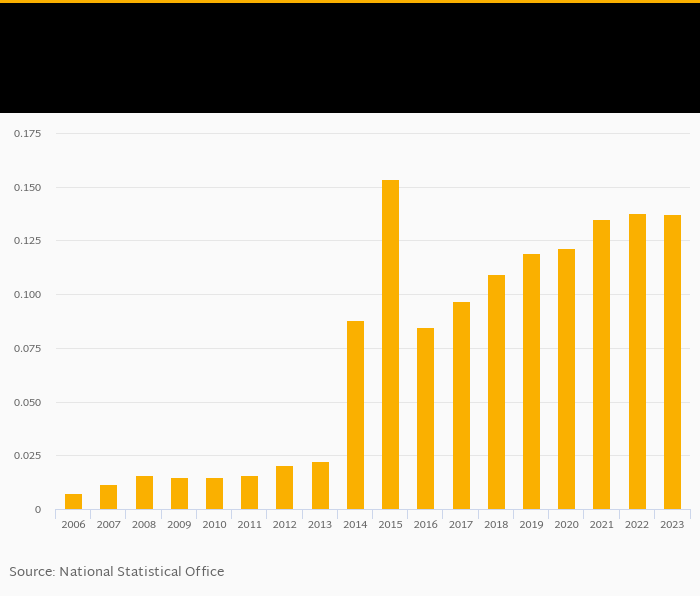 | Angola | mil | ... | ... | ... | 0.097 | 0.110 | 0.119 | 0.122 | 0.135 | |||||||||||||