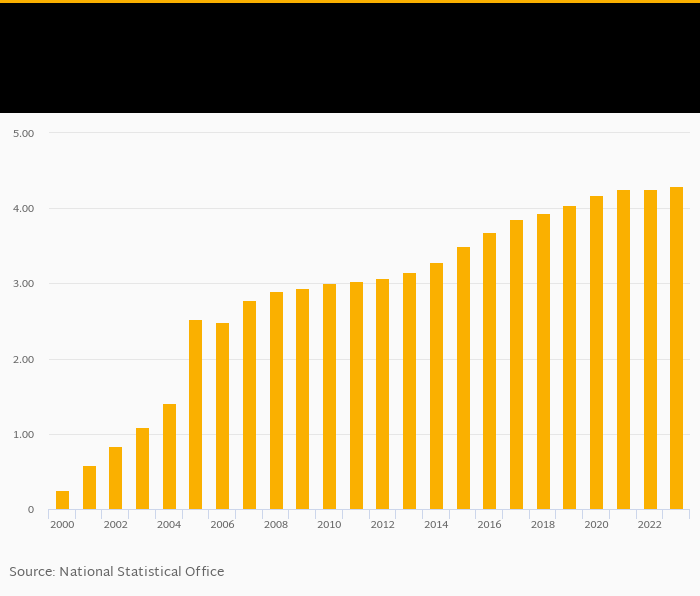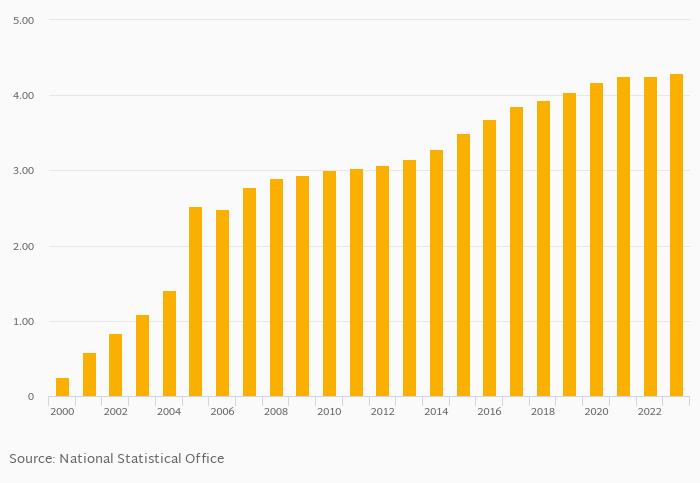 | Sweden | mil | 3.85 | 3.94 | 4.04 | 4.18 | 4.25 | ||||||||||||||||