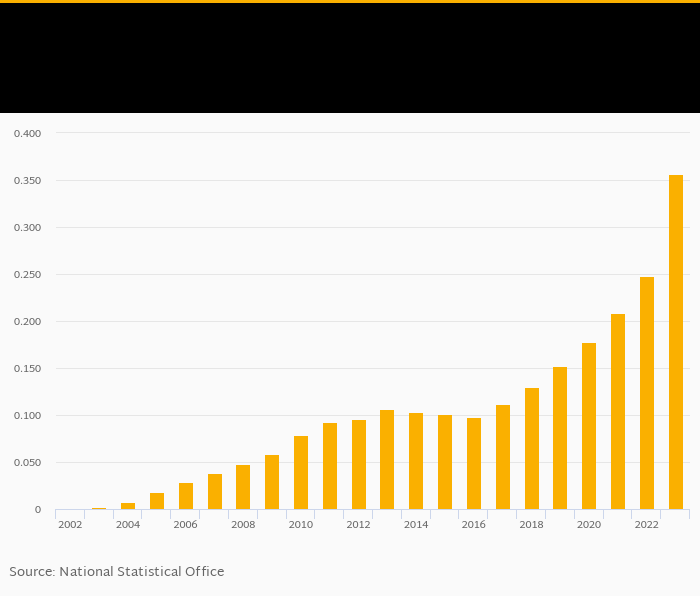| Guinea Bissau | mil | ... | ... | ... | ... | ... | ... | ... | < 0.001 | 0.001 | 0.001 | 0.002 | 0.003 | |||||||||