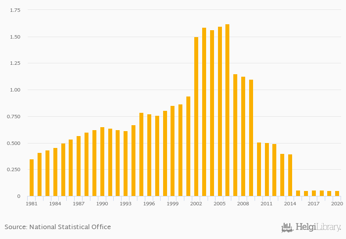 Historically, fixed line penetration as a percentage of population in Haiti reached an all time high of 1.62% in 2006 and an all time low of 0.053% in 2020. When compared to Haiti's main peers, fixed line penetration as a percentage of population in Cuba amounted to 13.3%, 10.5% in Dominican Republic, 15.5% in Jamaica and 21.8% in Puerto Rico in 2020.