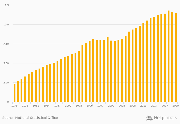 Historically, fixed line penetration as a percentage of population in Turkmenistan reached an all time high of 11.8% in 2018 and an all time low of 2.38% in 1975. When compared to Turkmenistan's main peers, fixed line penetration as a percentage of population in Afghanistan amounted to 0.374%, 33.3% in Iran, 16.3% in Kazakhstan and 10.6% in Uzbekistan in 2020.