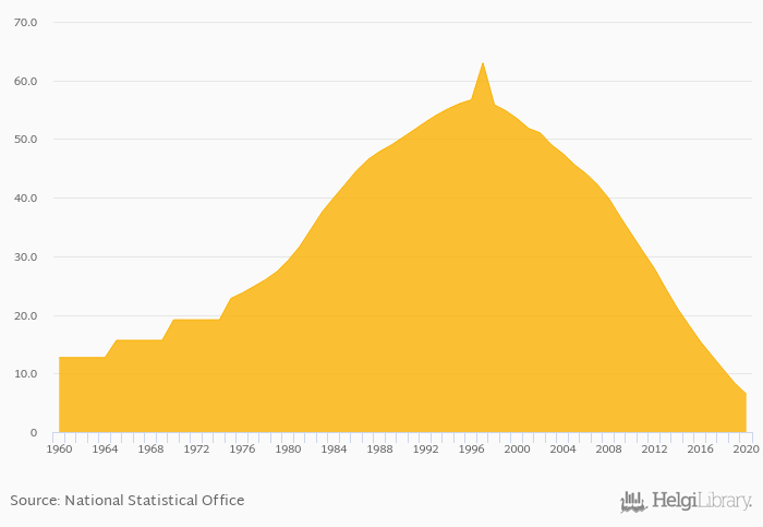 | Iceland | % | 42.6% | 35.4% | 32.2% | 29.2% | 27.0% | ||||||||||||||||