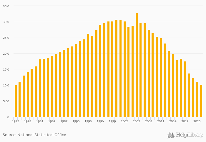 | Poland | % | 19.4% | 17.2% | 15.8% | 15.1% | 14.0% | ||||||||||||||||