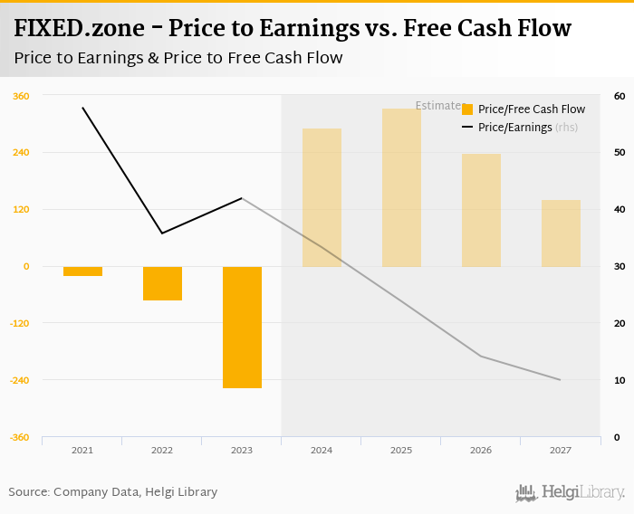 Regarding cash generated defined by the sum of net profit and depreciation, the stock traded at 28.1x at the end of 2023. When investments are excluded to get free cash flow, FIXED.zone traded at -257x.