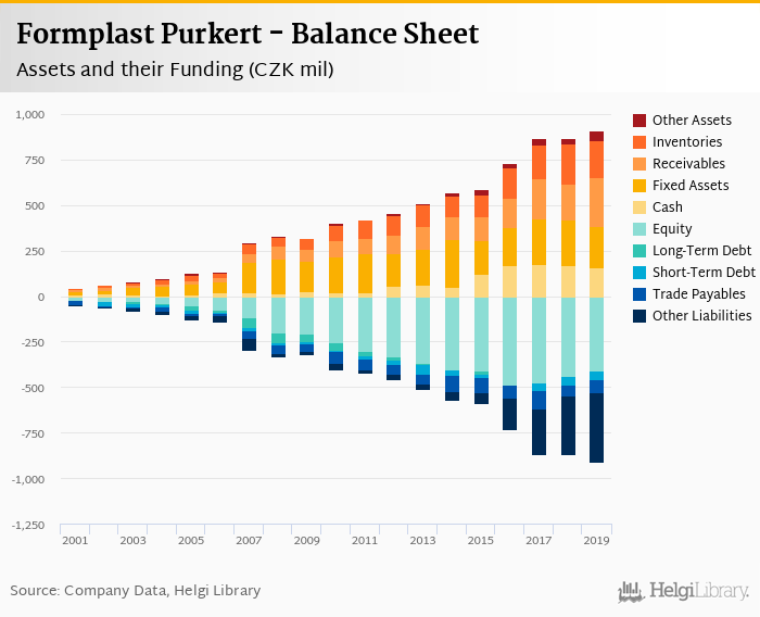 Formplast Purkert's total assets reached CZK 910 mil at the end of 2019, up 4.64% compared to the previous year.