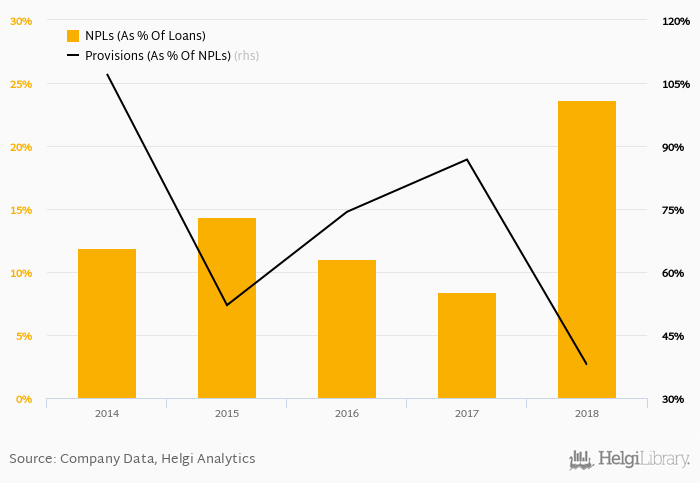 Provision coverage amounted to 37.9% at the end of 2018, down from 86.8% compared to a year earlier.