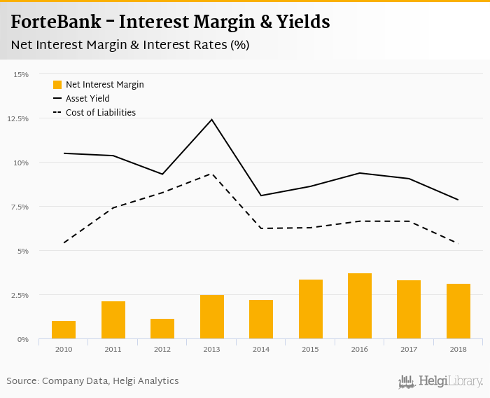ForteBank's net interest margin amounted to 3.15% in 2018, down from 3.34% compared to the previous year.