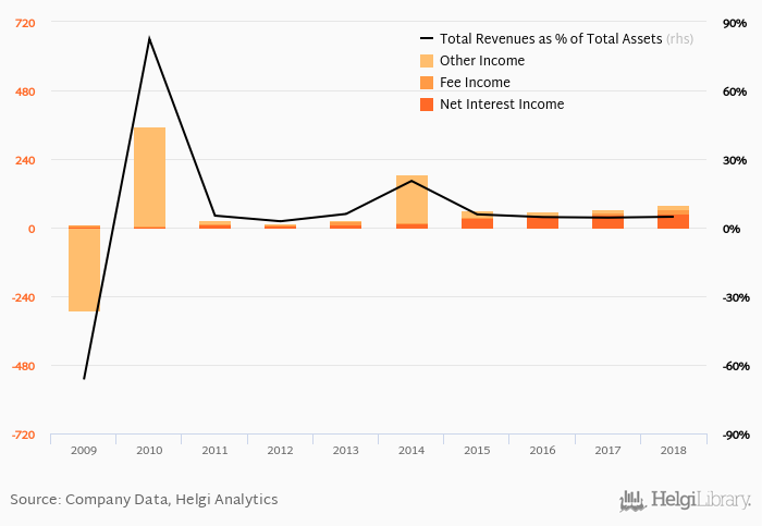 Bank's total revenues accounted for 4.75% total assets in 2018, up from 4.37% a year earlier.
