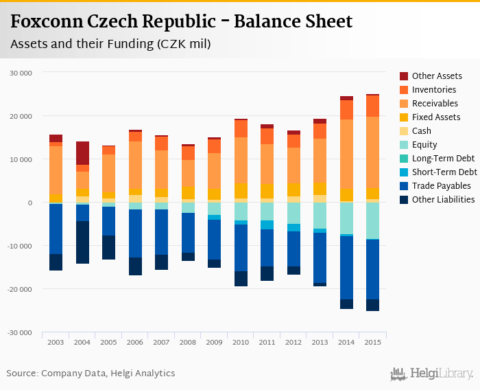 Foxconn Czech Republic's total assets reached CZK 25,143 mil at the end of 2015, up 2.4% compared to the previous year.