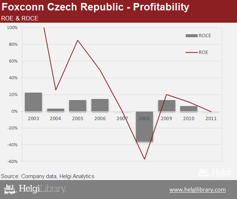 Total sales of the Czech subsidiary have exceeded CZK 100 bil in 2010 (or USD 5 bil). More than 90% of the Czech production is exported. Being a production facility of the Group only, financial analysis of the Czech subsidiary is rather meaningless here