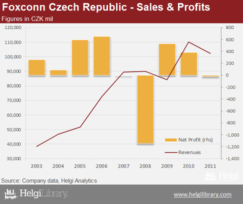 Total sales of the Czech subsidiary have exceeded CZK 100 bil in 2010 (or USD 5 bil). More than 90% of the Czech production is exported. Being a production facility of the Group only, financial analysis of the Czech subsidiary is rather meaningless here