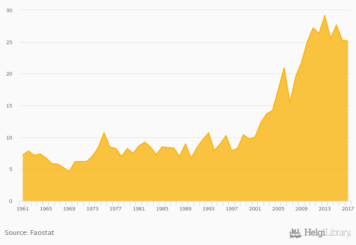 | Libya | kg | ... | ... | ... | ... | ... | ... | ... | ... | ... | ... | ... | ... | ... | 30.9 | 22.2 | 22.0 | 25.6 | 28.8 | |||