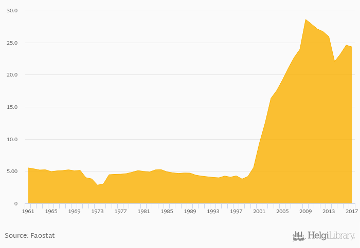 | Libya | kg | ... | ... | ... | ... | ... | ... | ... | ... | ... | ... | ... | ... | ... | 30.9 | 22.2 | 22.0 | 25.6 | 28.8 | |||