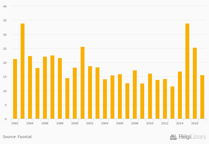 | Ukraine | kg | 18.9 | 18.5 | 19.9 | 22.5 | 22.3 |
