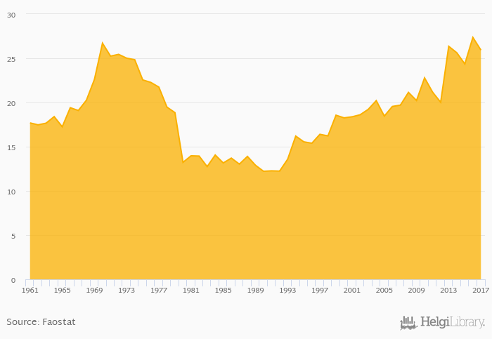| Chile | kg | 25.9 | 22.9 | 20.7 | 20.1 | 22.6 | ||||||||||||||||