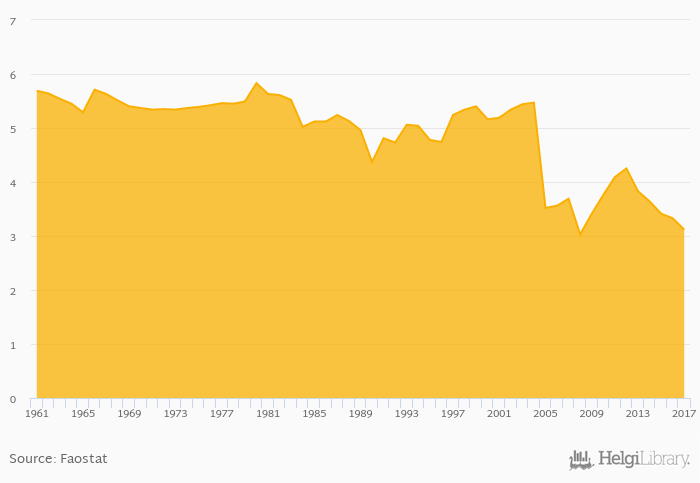 | Chad | kg | 6.69 | 6.35 | 6.40 | 6.00 | 5.87 | ||||||||||||||||