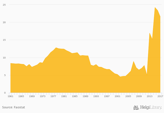 | Yemen | kg | 15.9 | 14.4 | 12.2 | 11.4 | 16.6 |