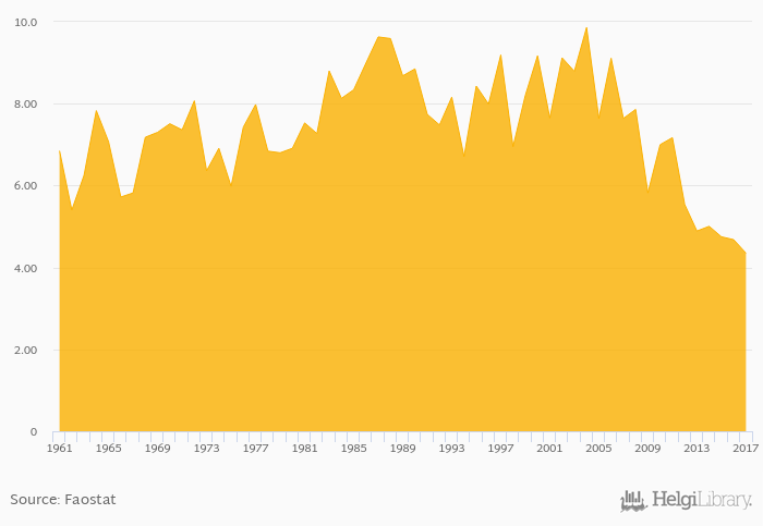 | Swaziland | kg | 8.75 | 10.4 | 13.8 | 13.7 | 11.0 | ||||||||||||||||