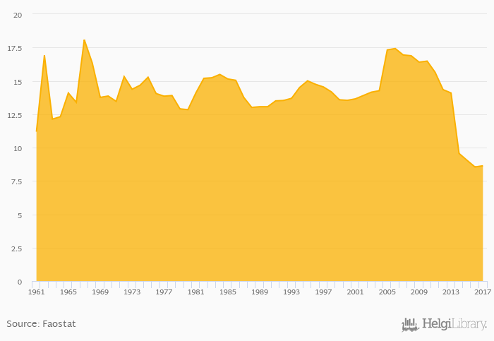 | Iraq | kg | 23.5 | 23.4 | 21.6 | 19.2 | 13.0 | ||||||||||||||||