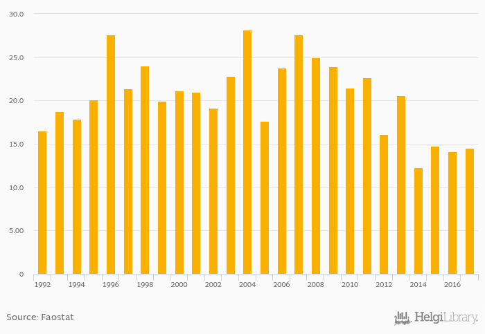 | Croatia | kg | 15.1 | 14.5 | 15.2 | 17.1 | 17.1 | ||||||||||||||||