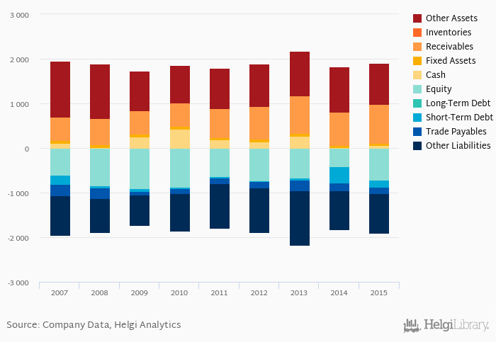Net debt against equity is up 0.594 pp from five years ago (-0.462). The ratio against EBITDA increased from -1.74x seen in 2010 to 0.225x.