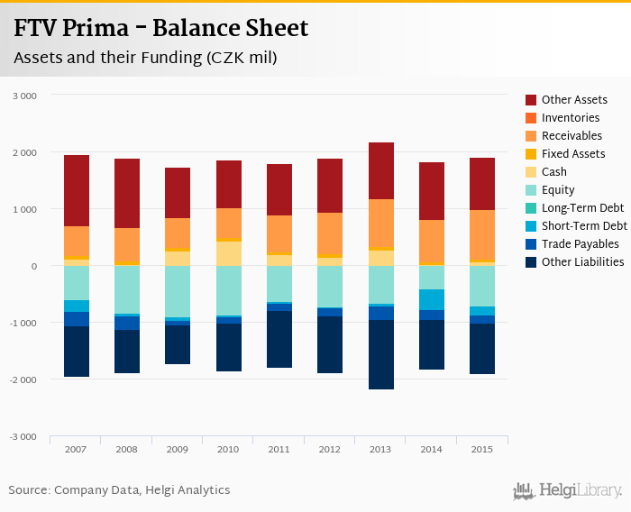 FTV Prima's total assets reached CZK 1,900 mil at the end of 2015, up 4.36% compared to the previous year.