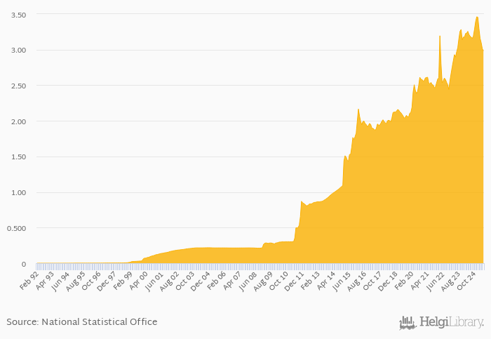 Historically, Average FX rate to USD in Belarus reached an all time high of 3.46 per USD in December 2024 and an all time low of < 0.001 per USD in February 1992.