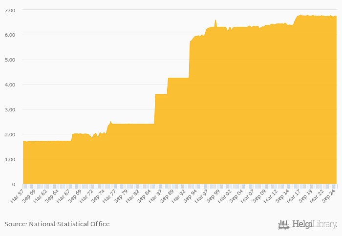 Historically, FX rate to USD at the end of period in Trinidad and Tobago reached an all time high of 6.79 per USD in 2Q2017 and an all time low of 1.68 per USD in 4Q1957.
