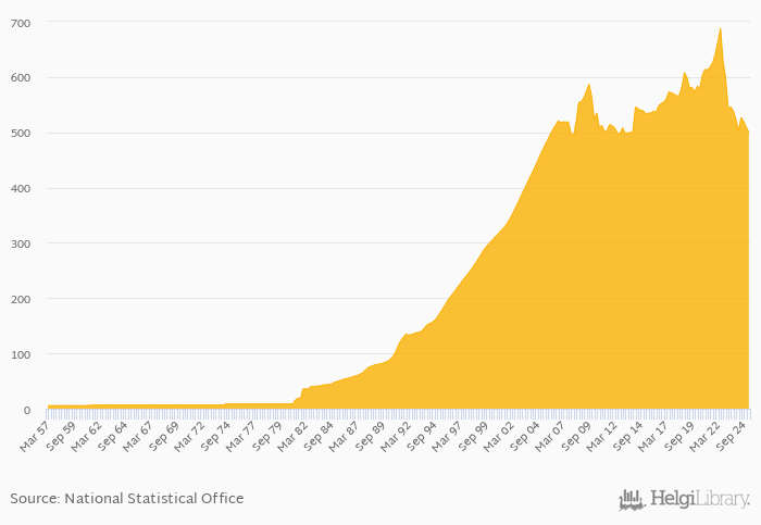FX rate to USD at the end of period fell 0.468% yoy to 501 per USD in Costa Rica in 1Q2025, according to the National Statistical Office. This is 1.78% less than in the previous quarter.