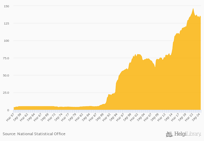 Historically, FX rate to USD at the end of period in Algeria reached an all time high of 146 per USD in 2Q2022 and an all time low of 3.50 per USD in 1Q1957.
