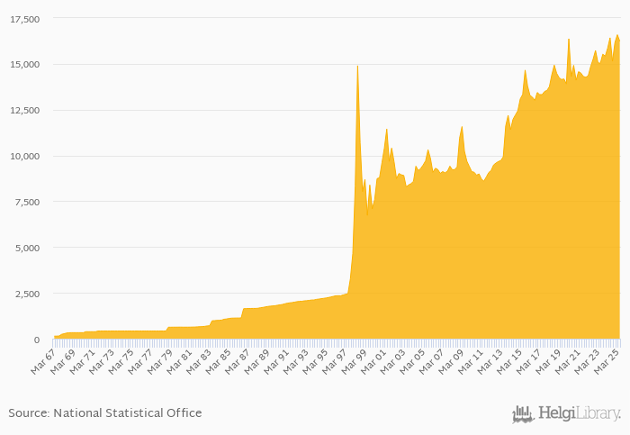 FX rate to USD at the end of period fell 1.14% yoy to 16,233 per USD in Indonesia in 2Q2025, according to the National Statistical Office. This is 2.14% less than in the previous quarter.