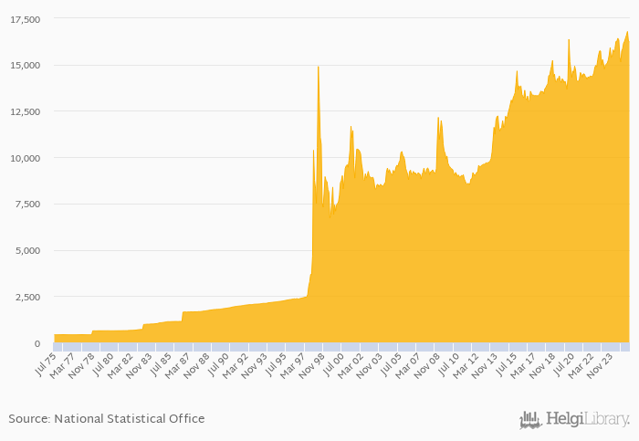 FX rate to USD at the end of period fell 1.14% yoy to 16,233 per USD in Indonesia in June 2025, according to the National Statistical Office. This is 0.135% less than in the previous month.
