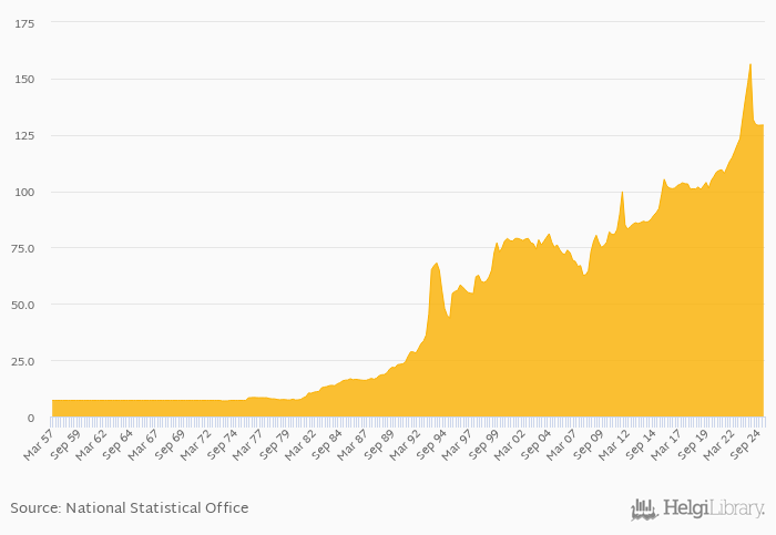 FX rate to USD at the end of period fell 1.88% yoy to 129 per USD in Kenya in 1Q2025, according to the National Statistical Office. This is 0.018% more than in the previous quarter.