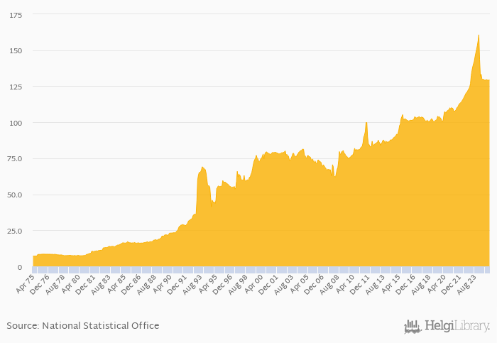 FX rate to USD at the end of period fell 1.88% yoy to 129 per USD in Kenya in March 2025, according to the National Statistical Office. This is 0.070% more than in the previous month.
