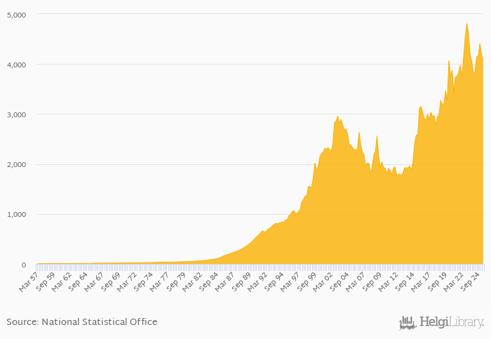 Historically, FX rate to USD at the end of period in Colombia reached an all time high of 4,810 per USD in 4Q2022 and an all time low of 2.51 per USD in 1Q1957.