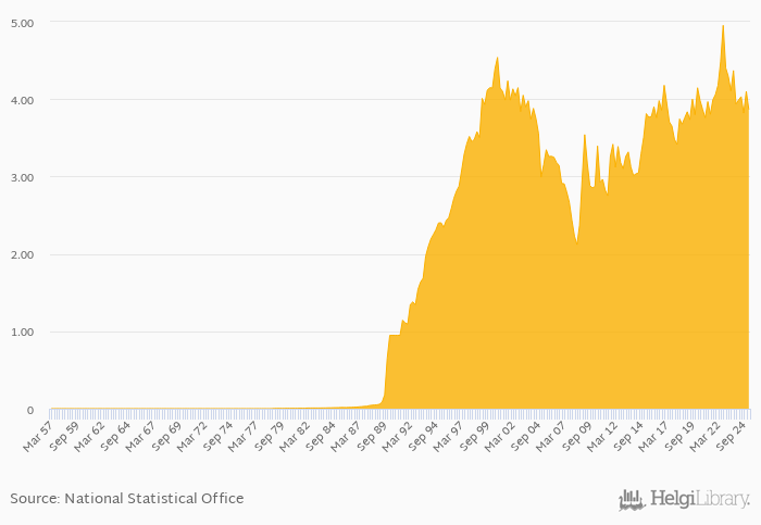 Historically, FX rate to USD at the end of period in Poland reached an all time high of 4.95 per USD in 3Q2022 and an all time low of < 0.001 per USD in 3Q1973.