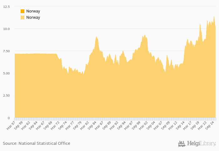 Historically, FX rate to USD at the end of period in Norway reached an all time high of 11.4 per USD in 4Q2024 and an all time low of 4.84 per USD in 2Q1980.