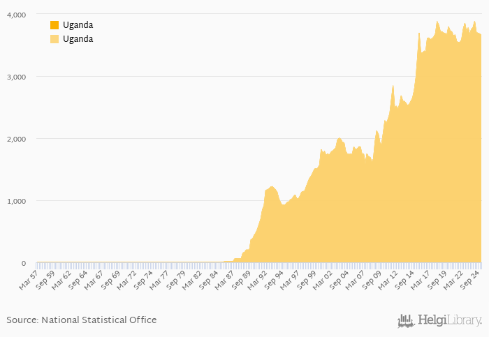 Historically, FX rate to USD at the end of period in Uganda reached an all time high of 3,885 per USD in 1Q2024 and an all time low of 0.069 per USD in 4Q1973.