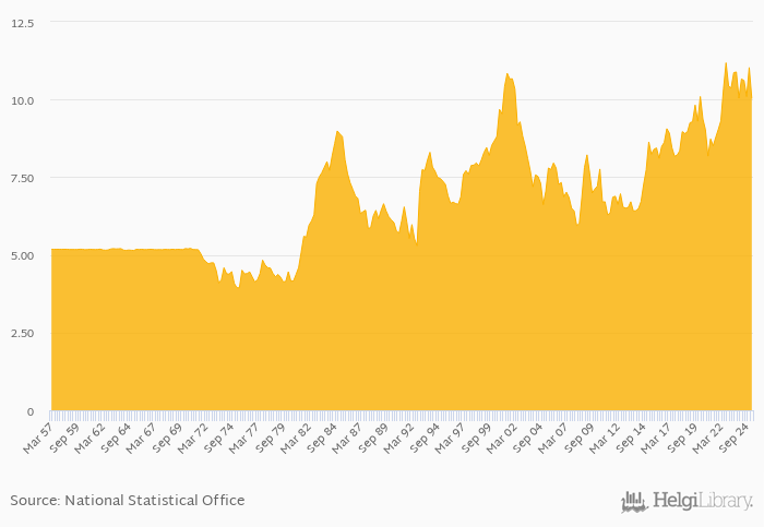 FX rate to USD at the end of period fell 5.90% yoy to 10.0 per USD in Sweden in 1Q2025, according to the National Statistical Office. This is 9.05% less than in the previous quarter.