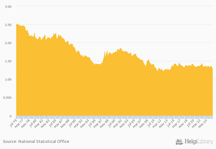 FX Rate to USD (End of Period) fell 6.09% yoy to 1.28 per USD in Brunei in June 2025