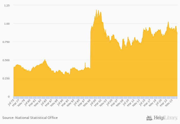 | Italy | per USD | 0.963 | 0.962 | 0.961 | 0.925 | 0.879 | ||||||||||||||||