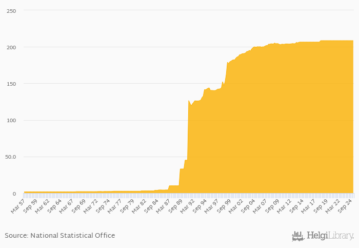 Historically, FX rate to USD at the end of period in Guyana reached an all time high of 209 per USD in 1Q2025 and an all time low of 1.68 per USD in 4Q1957.